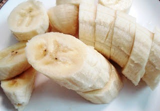 - Бананы, очищенные от кожуры, нарежьте в произвольной форме, но убедитесь, что все будут иметь одинаковый размер: