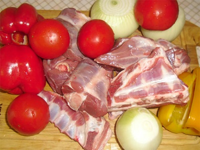 Удалить из мяса все мелкие косточки, посолить, поперчить. В чашу мультиварки налить 2 столовые ложки растительного масла. Помидоры и репчатый лук нарезать. Баранину и помидоры смешать руками, выдавливая сок из помидор в процессе перемешивания.