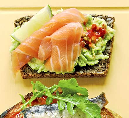 - Покрыть каждый кусочек хлеба кусочком рыбы.