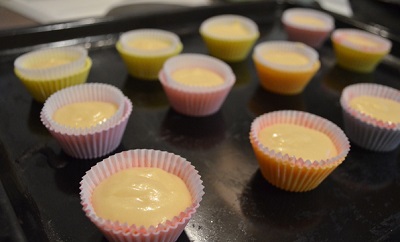 Берем приготовленные формочки и выкладываем в них ложкой тесто. Заполняем формочки на 2/3. Кексы ставим на противень и убираем в духовку, предварительно разогретую до 180 С. Выпекаться кексы будут около 13-18 минут. Капкейки должны быть белого цвета. Если на них появилась золотистая корочка, то капкейки могут оказаться суховатыми. Добавляем крем или украшения по вкусу и подаем к столу.