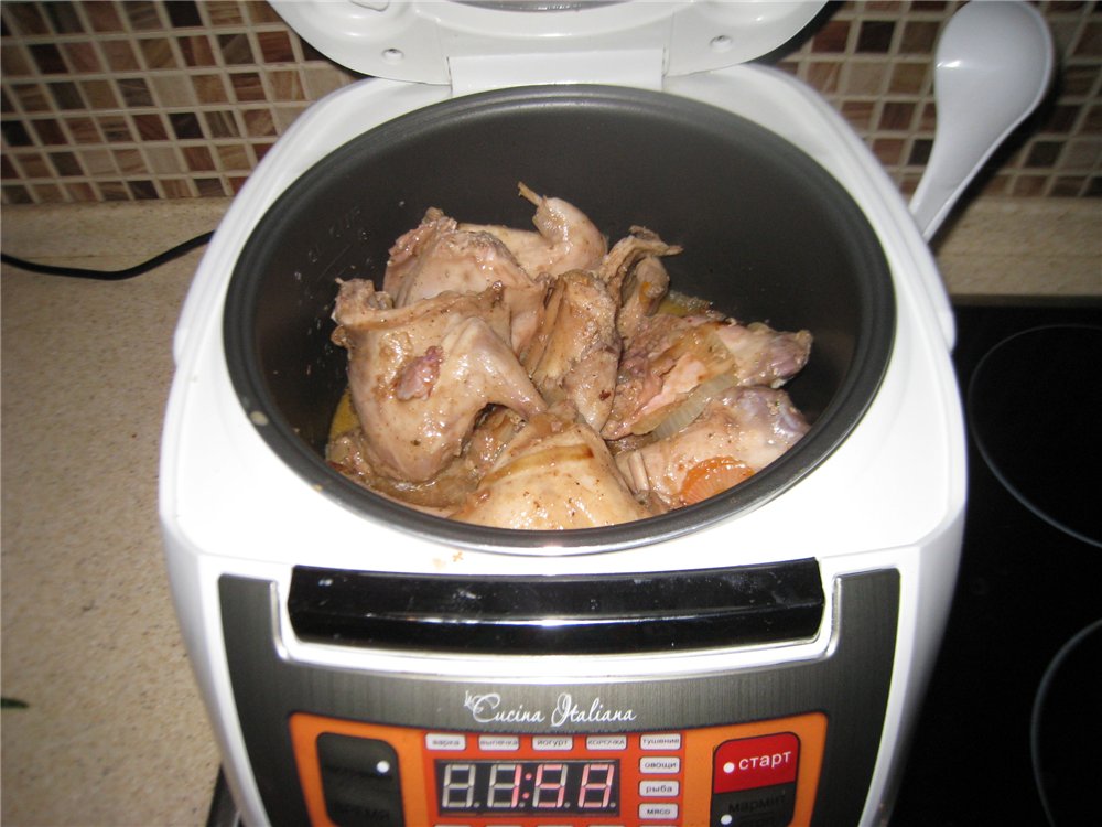 На нашем портале вкусностей Вы также сможете найти рецепты приготовления соусов, отлично гармонирующих с кроличьим мясом, к примеру, соус «Песто». Еще одним немаловажным качеством кроличьего мяса является тот факт, что оно относится к категории диетических и низкокалорийных продуктов. Сегодня, благодаря мультиварке, хозяйке подвластна любая кулинарная задача. Особенно замечательно она подходит для тушения, поскольку обладает всеми свойствами предназначенной для этого чугунной посуды. Итак, вперед!