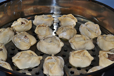 кастрюле тем временем уже должна вскипеть, поставьте на нее Ваши манты с