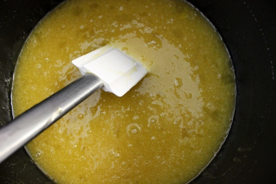 - Верните смесь на плиту и готовьте тесто на среднем огне в течение примерно 7 минут, пока не увидите, что оно почти вдвое увеличилось в размерах и стало глубоко карамельного цвета. Снимите с огня: