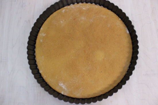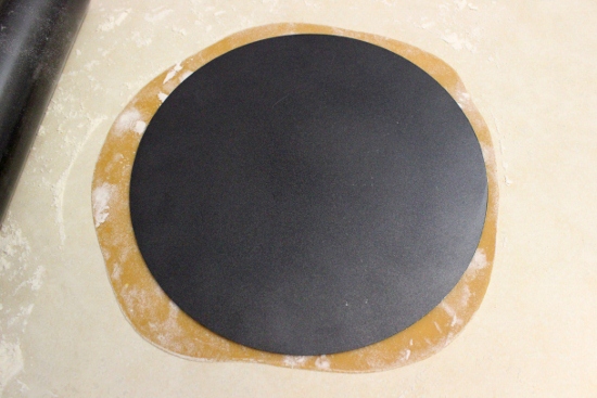 - Чтобы при выпекании коржи получались идеально круглыми, используйте съемное дно от разъемной формы. Можно также использовать крышку от кастрюли желаемого размера, в общем, любой круг который будет удобно держать. По контуру круга вырежьте коржи. Сохраните все отходы: позже их можно разместить на листе выпечки и испечь. Они вам понадобятся позже, когда нужно будет раздавить их в крошку и посыпать бока и верх торта: