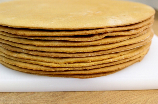 - Быстро повторить процедуру выпекания коржей с остальным тестом. Должно получиться примерно 8-10 коржей: