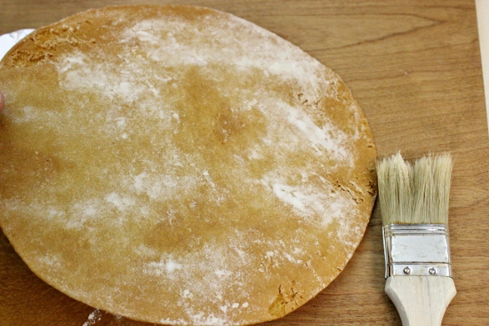 - Стряхните кисточкой лишнюю муку с коржей: