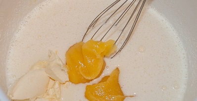 Пока бисквит остывает можно приготовить крем. Для этого необходимо подготовить охлажденную сметану, ванилин и загуститель для сливок. При помощи миксера необходимо взбить сметану и загуститель в глубокой емкости.