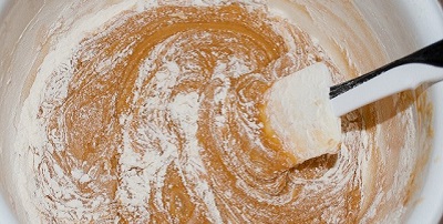 Растопим мед. При этом не обязательно делать это на водяной бане. Главное, чтоб он не закипел. Немного осутдим его и добавим в нашу яично-сахарную массу и продолжим взбивать при помощи миксера. В отдельную миску просеем муку, добавим разрыхлитель, и полученную смесь постепенно добавим к яйцам и сахару. Тесто должно получиться как на оладьи.