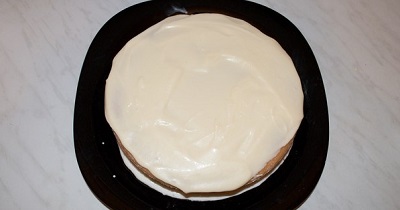 Хорошо промазываем приготовленным кремом все коржи и бока торта. Даем крему немного пропитать торт и посыпаем его крошкой. Сверху торт можно украсить измельченными грецкими орехами или сахарной глазурью.