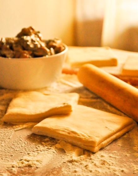 2) Уже готовое или приготовленное по любому рецепту слоеное тесто;