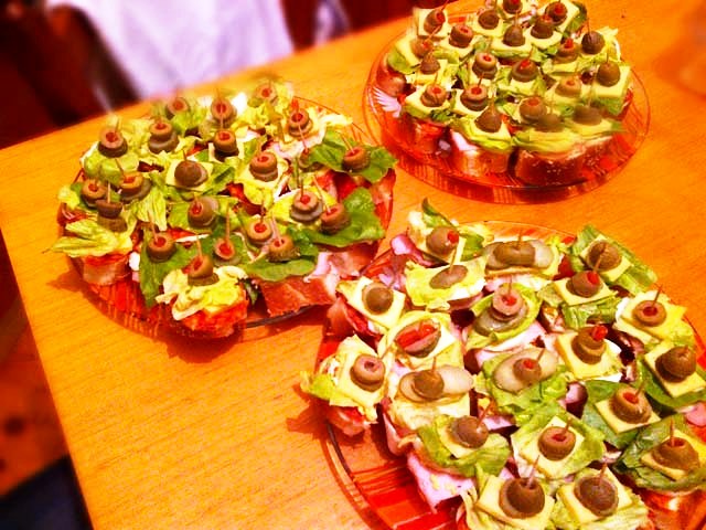 Рецепт канапе на шпажках с ветчиной и оливками