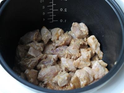 и помещаем туда мясо, овощи и специи. Обжариваем, часто помешивая, так, чтобы мясо поджарилось, но еще не потемнело.