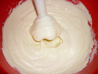 Белки взбиваем в пышную пену, продолжаем взбивать и постепенно вводим сахар небольшими порциями. Очень аккуратно добавляем белки в готовую творожную массу.