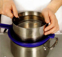 Подготовленный заранее дуршлаг необходимо застелить кухонным полотенцем или сложенной в несколько слоев марлей. Выложить в марлю творог, накрыть свисающими краями и поставить его в емкость большую по размеру. Сверху на полотенце или марлю поставить груз, весом 1-3 кг. В таком виде необходимо оставить его на 4 часа, чтоб стекла жидкость.