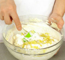 Таким же способом необходимо порубить в мелкую крошку печенье. Орехи и печенье смешать и приправить корицей. Засахаренный имбирь мелко нарезать, а готовый и отжатый творог протереть через сито. Вареную сгущенку немного прогреть на водяной бане и смешать с творогом и соком одного лимона.