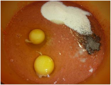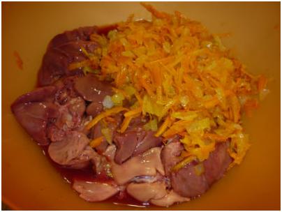 Блендером измельчить печень и овощи, у кого нет блендера, вы можете использовать мясорубку. Следующий наш шаг – добавить соль, перец, яйца, манную крупу и ещё раз взбить.