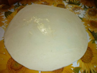 Разводим соль, сахар, дрожжи и подсолнечное масло в теплой воде, аккуратно вмешиваем муку и замешиваем мягкое и эластичное тесто. Накрываем салфеткой и даем отдохнуть 15-20 минут. Делим тесто на три равных части. Одну раскатываем в тонкий пласт, а две остальных ложем в пакет и убираем в холодильник.