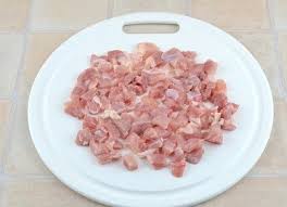 1. Филе нарезать мелкими кусочками, если используете окорочок – нарезать с него мясо;