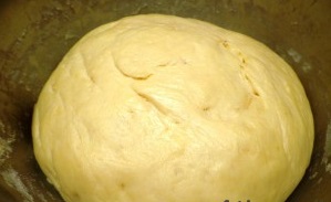 Для приготовления теста растворяем в теплом молоке дрожжи и чайную ложку сахара. В отдельной емкости взбиваем яйца с сахаром и солью. Смешиваем дрожжевую и яичную массу, добавляем растопленный маргарин. В смесь добавляем 2-3 ст. л. растительного масла и снова перемешиваем. В полученную смесь добавляем муку и хорошо вымешиваем тесто. Накрываем опару полотенцем и оставляем на один час.