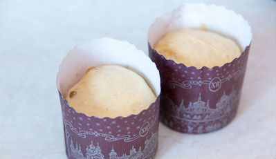 4. Руками, смазанными растительным маслом делим тесто на такие количество частей, сколько у Вас будет куличей и выкладываем части в формы из силикона или другие формы. Заполняем форму не более чем на треть и снова оставляем не менее чем на час, чтоб оно успело подняться. Разогреваем духовку до 180С, выпекаем 40 минут. После достаем готовый кулич и кладем его на бок, чтоб он смог остыть.