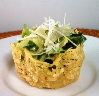 Иногда из довольно простых рецептов получаются очень элегантные результаты. Например, из этого рецепта салата «Цезарь» в чашках из пармезана может получиться красивая и вкусная закуска для встречи гостей на званый обед или ужин. Салат содержит только 47 калорий, поэтому он как нельзя более подходит и для диетической программы.