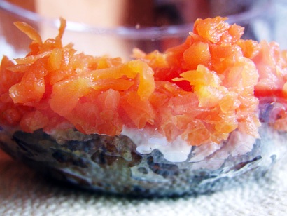 его поверх лука и майонеза.