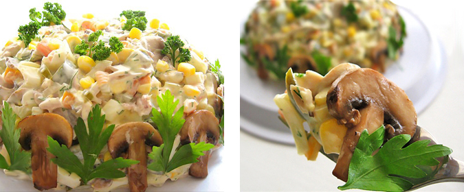 Салат "Осенний" с курицей, грибами