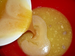 Подогреваем сыворотку и добавляем в нее дрожжи, тщательно размешиваем. Растапливаем сливочное масло. Яйца, сахар и ванилин тщательно взбиваем венчиком. К полученной сыворотке добавляем растопленное масло и яичную массу, все тщательно вымешиваем. Постепенно вводим муку и замешиваем тесто. Хорошо обминаем его и ставим в теплое место на расстойку. Делим тесто на три части, стол смазываем растительным маслом.
