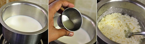 1) Молоко вскипятить, добавить лимонный сок (уксус), и непрерывно помешивая, кипятить до свертывания молока: