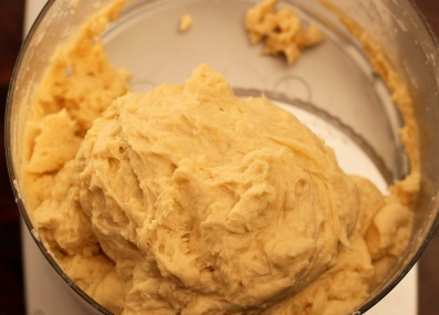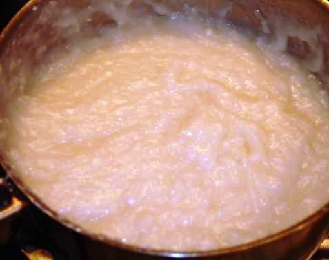 - Не допуская закипания, снимаем посуду с огня, перекладываем тесто в другую посуду, даем немного остыть, и начинаем добавлять оставшуюся муку, приготовленную водку и яйца.