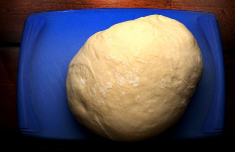 - Замешиваем тесто, выкладываем на разделочную доску и основательно месим руками, пока оно не перестанет к ним прилипать. Закрываем пленкой, убираем отстаиваться, либо в холодильник, если тесто для чебуреков для заварного теста заготавливается для следующего дня.