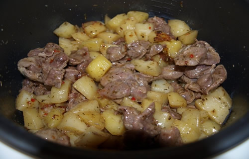 Если Вы давно не ели субпродукты, настало время их приготовить. На нашем портале вкусностей Вы найдете множество несложных рецептов приготовления куриных субпродуктов при помощи мультиварки. К примеру, мы уже говорили о том, как готовить печень в ароматном молочном соусе. Сейчас мы предлагаем Вам приготовить простое, но очень полезное и сытное блюдо – тушеные куриные желудочки с картофелем в мультиварке.