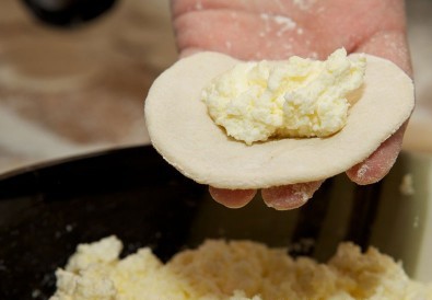 - Тем временем подготовить тесто для вареников с творогом, раскатать и нарезать удобным для себя способом.