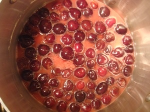 - Подготовьте вишни (свежие или замороженные). Сделайте это таким образом: смешайте все ингредиенты в средней кастрюле. Поставьте на огонь и дайте закипеть. Продолжите кипятить около двух минут и после снимите с огня.