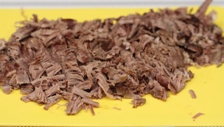 Готовое мясо отделить от костей и процедить бульон.