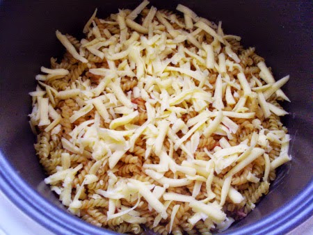 Посолить подготовленный фарш и обжарить его с луком в мультиварке на режиме «жарка» в течении 15-20 минут до готовности. Готовый фарш выкладываем на тарелку и даем остыть. Чашу мультиварки смазываем маслом и на дно выкладываем половину подготовленных макарон. Лучше всего использовать макаронные изделия типа рожки или спиральки, которые имеют небольшую длину. Сверху на макароны помещаем фарш и равномерно распределяем его. На фарш снова выкладываем слой макарон и равномерно их распределяем.