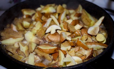 Надолго в воде их не оставляют, так как они очень сильно впитывают влагу. Большие грибы разрезаем на несколько частей.