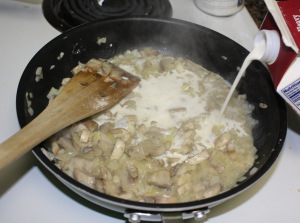 4. Затем добавьте сливки и размешайте.